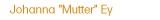 Johanna Ey wurde am 4. März 1864 in einem kleinen Dorf am Niederrhein geboren und heirate den Braumeister Robert Ey – mit ihm bekam sie vier Kinder. Nach 20jähriger Ehe ließ sie sich scheiden und mietete in Düsseldorf in der Nähe der Kunstakademie ein Ladenlokal. Hier, in ihrer Bäckerei, gab es preiswertes Essen. Dies, und dass sie auf „Pump“ essen konnten, war wichtig für die angehenden Künstler. Dieses nahm allerdings bald überhand, da viele sich sogar Nahrungsmittel für Zuhause mitnahmen. Ihr Geschäft florierte – bei „Mutter Ey“, dieser Spitzname bürgerte sich bald ein, fand man nicht nur Gelegenheit zu einer Pause, sondern die Mischung aus Kaffee, Kuchen und Konversation waren so beliebt, dass auch Professoren regelmäßig in „das Ey“ kamen.